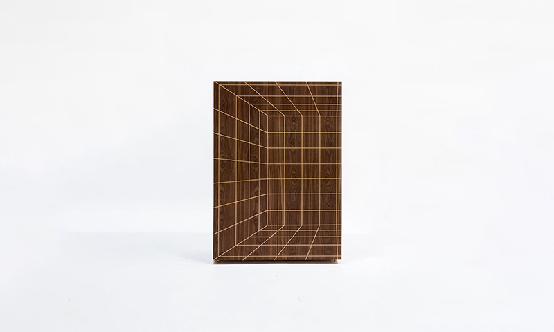 Prospecto is a collection of wooden furniture skilfully decorated by inlaid thin brass profiles.This ancient inlay technique is here re-proposed to generate new three-dimensional effects that refer to optic art and at the same time remind us of Brunelleschi’s perspective drawings, Piero della Francesca’s paintings while also evoking the Renaissance atmosphere of Federico Da Montefeltro’s studio in Urbino.This is a design concept based on the theme of travel, which is not only a prerogative of a body in motion but also a mind getaway that can find its freedom in the domestic walls.